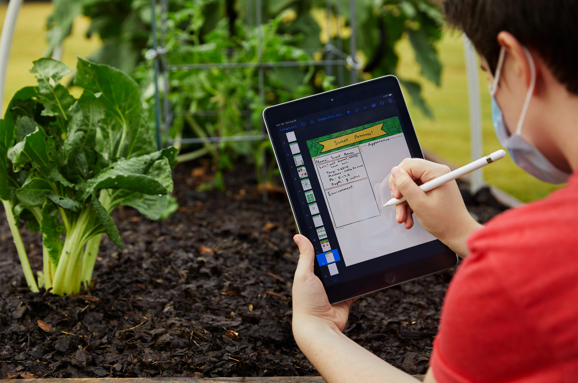 Last year, inspired by the Everyone Can Create curriculum, Deinhammer developed and recently released the "Everyone Can Create in Science" book with fellow Apple Distinguished Educators. Many of those concepts are being applied to the gardening class, as Deinhammer believes creativity and flexible learning encourages students to grow. She uses iPad to design lessons and assignments for each of her students in a format — audio, visual, or written — that works best for them. Students capture their findings in a digital field guide created in Keynote, combining all of their work in a book to be shared with future gardening classes and the local community.