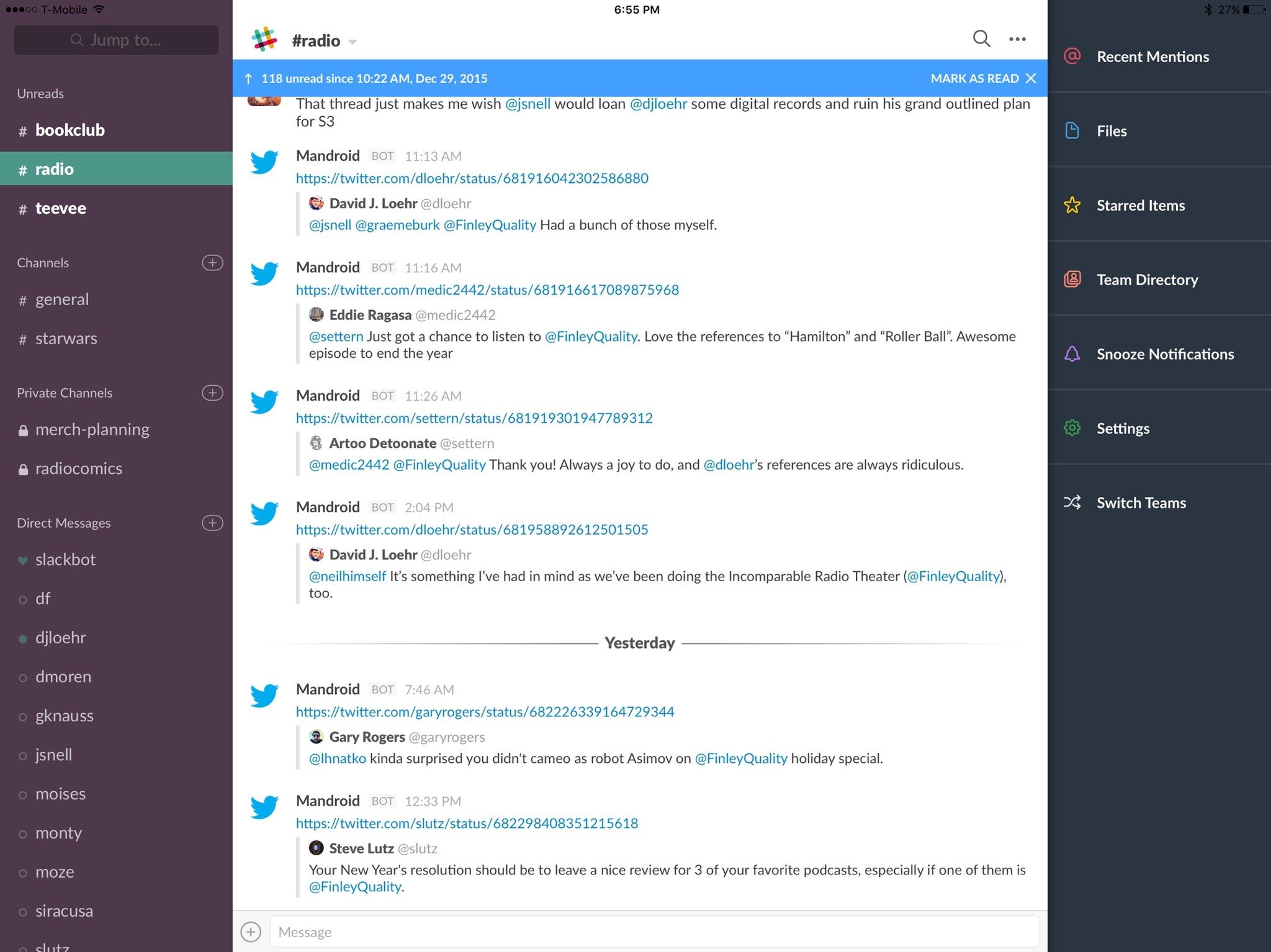 I live in Slack about as much as I live in Twitter these days. It's where my tech communities, podcast buddies, and work colleagues communicate, and the company is constantly iterating to provide the best experience possible. I doubt anyone reading this hasn't had some exposure to Slack already, but if you haven't: Go. Explore. It's pretty much the best.
