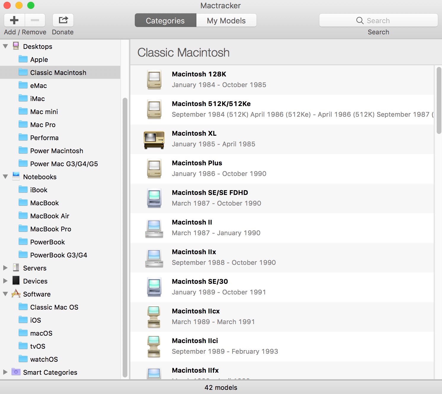 Apple geeks, pay attention. This little reference tool is going to impress you. It features detailed information on every single Apple product ever made, including things like processor speeds, original price, and current selling price. Did you know that the first Macintosh only had 1 MB of memory? With Mactracker, you will know all about all the Macs. And, you can input your own Apple devices, too. So you can keep track of what you own and whether it is still under warranty. It covers more than just Mac's too. You can look up servers, PowerBooks, and every software update for every device.