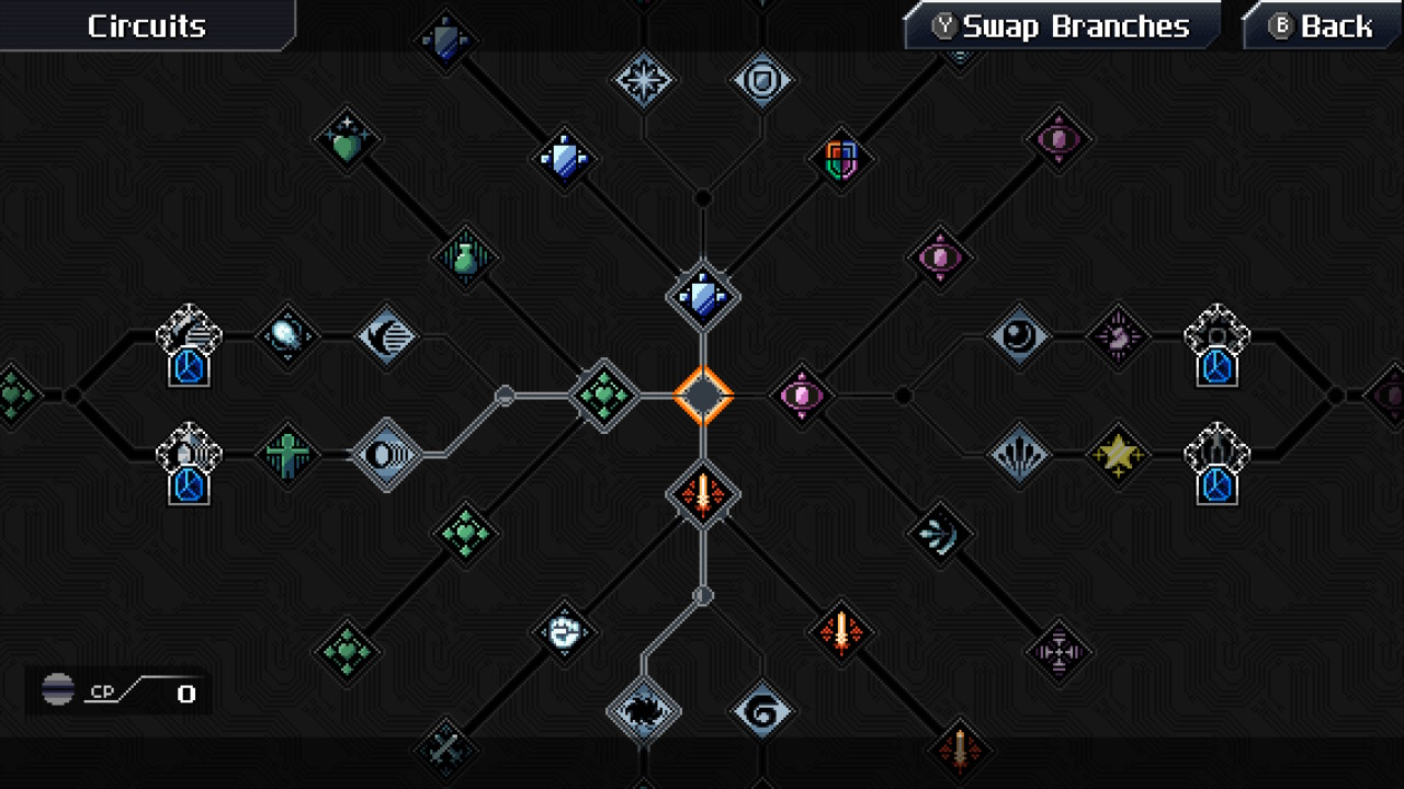 The skill tree is one of the quadruple branching paths setups. You first select a main node then follow its path outward, choosing (and switching between) branches that you unlock. These can add new attacks or passive buffs to make gameplay easier. As you might expect, there's a lot of build diversity here, and it certainly tries to encourage replaying the game again to spec your character differently.