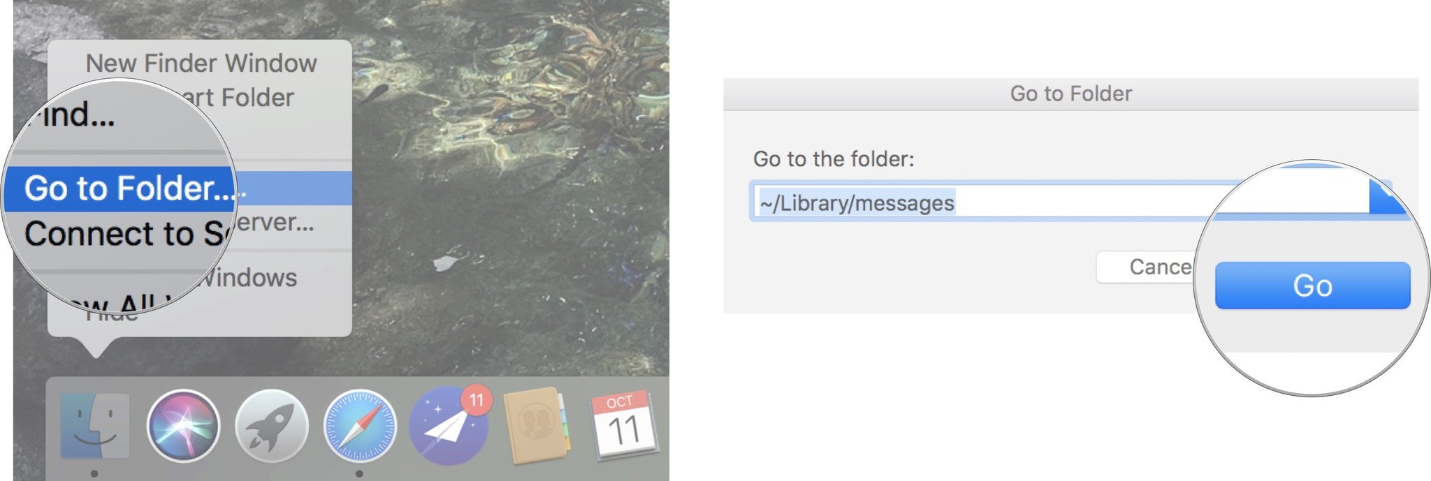 - Enter ~/Library/messages into the text field.