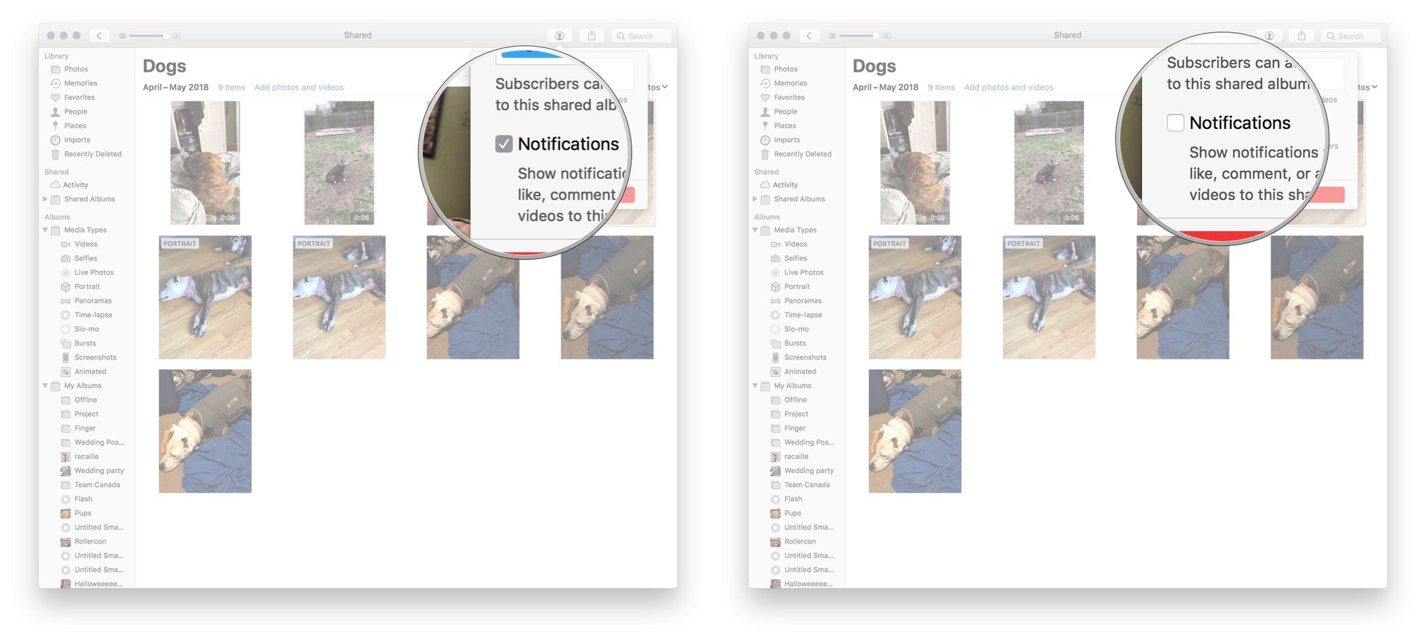 - Un-check the box next to Notifications to turn off notifications for this album.