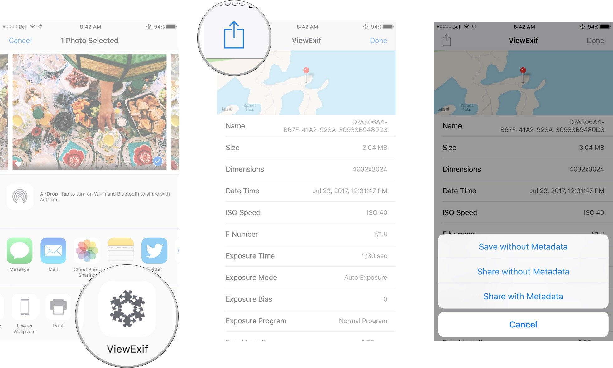 - A window will appear on your screen — you can then choose to Save without Metadata, Share without Metadata, or Share with Metadata.