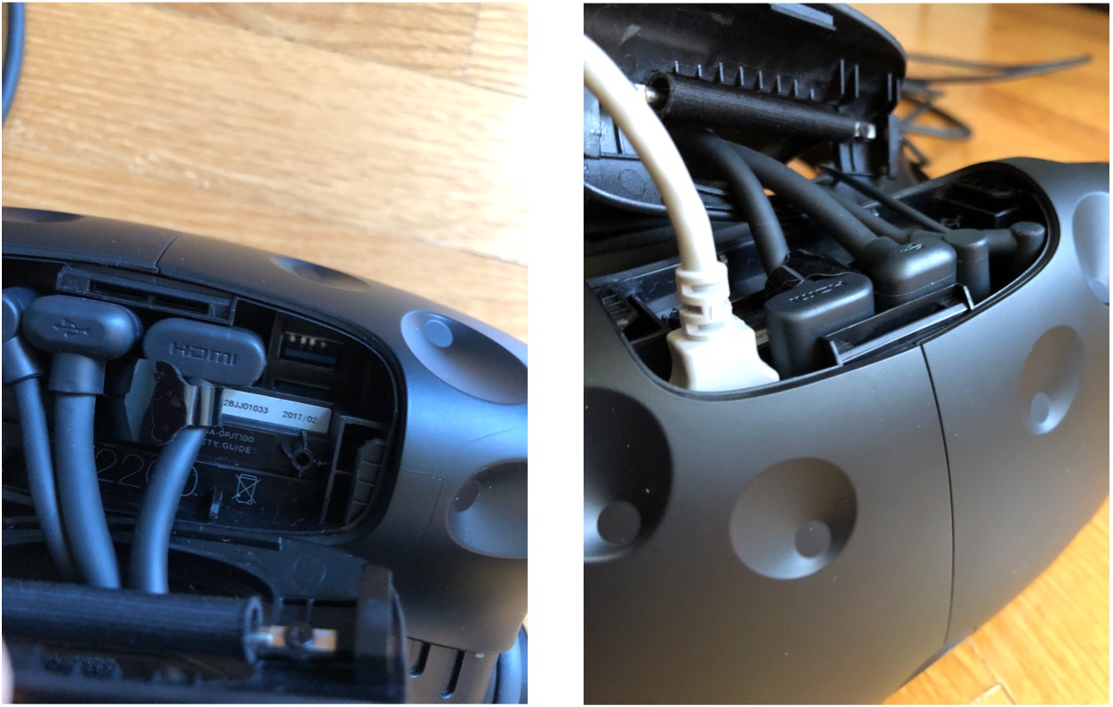 - Remove the top sliding cover on the HTC Vive to get access to the spare USB port.