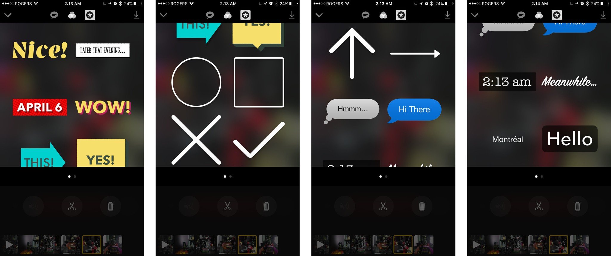 Where would our snappy and instant candids be without word bubbles, comic callouts, time and location stamps, and even emoji to cover up what's best left unseen? Apple's new video app, Clips lets you add just such overlays to your video. They're not very elaborate yet but several of them are elegantly animated and can definitely ramp up the fun factor.