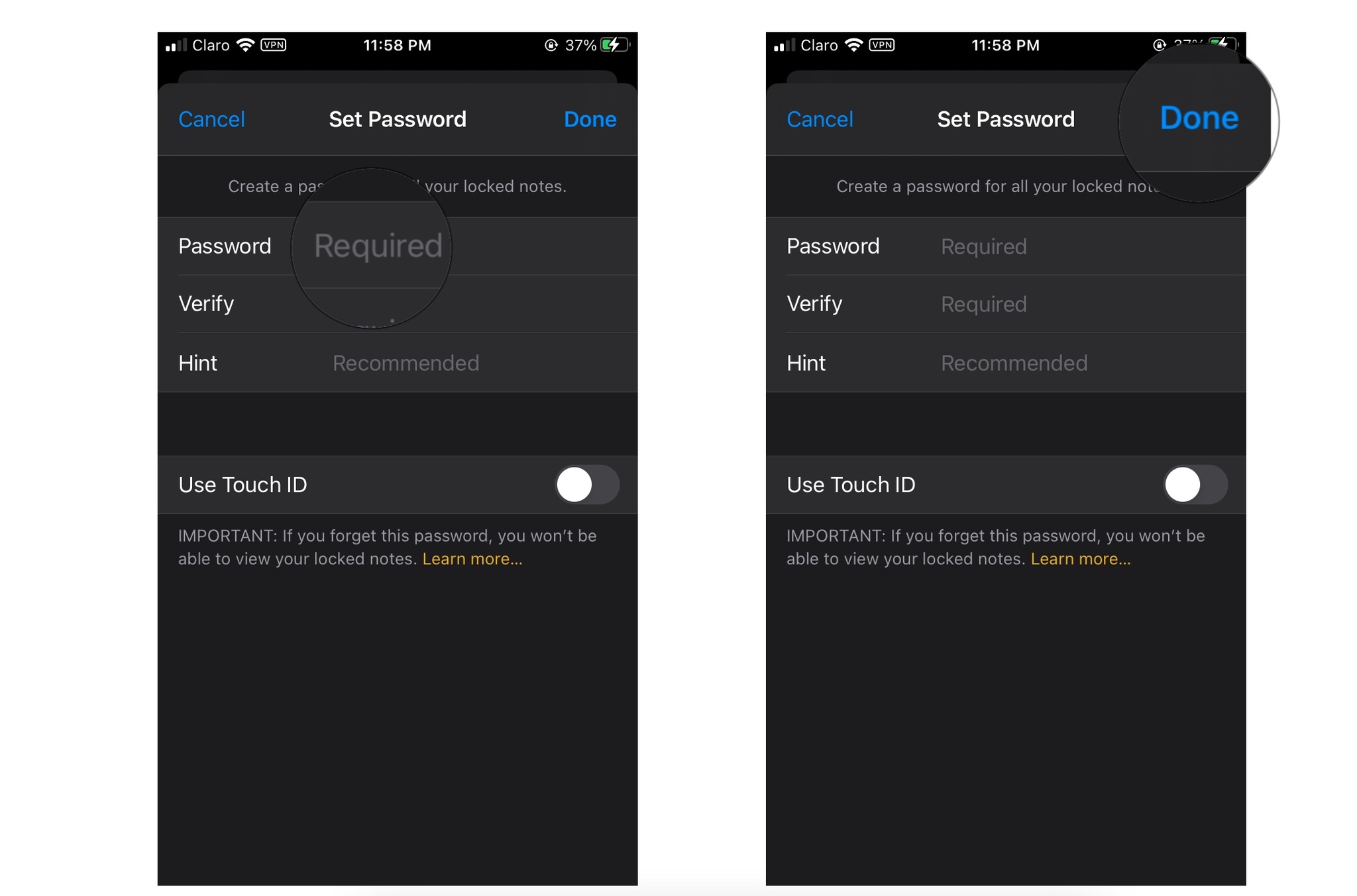 - Enter a Password — this will be for all your notes, including Notes on Mac, if you use it.
