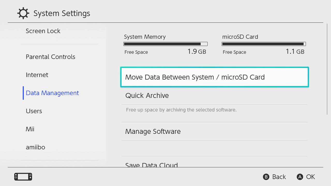 Note: Some Nintendo Switch game data isn't capable of moving between internal storage and the microSD card. So while this update will work for the majority of data on the Switch, it won't work for all of it.
