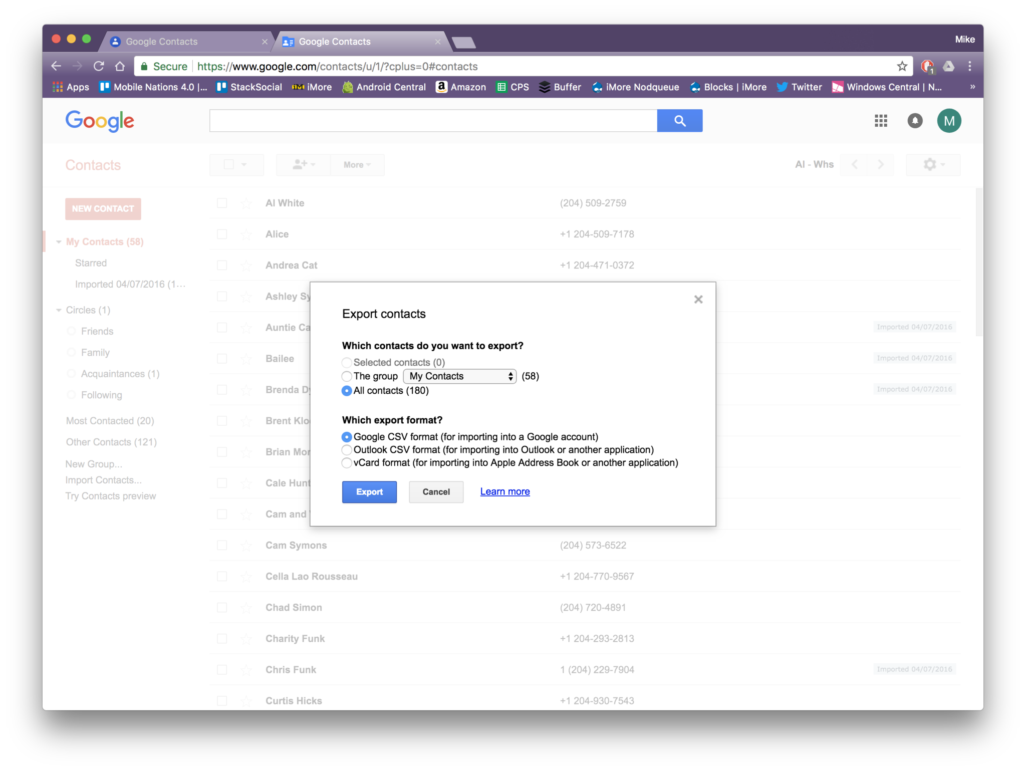 At this point, your contacts are fully accessible on your Mac, or any device for that matter, but if you want to save them so that they're physically housed on your Mac, here's how. (Screenshots are all in Chrome.)