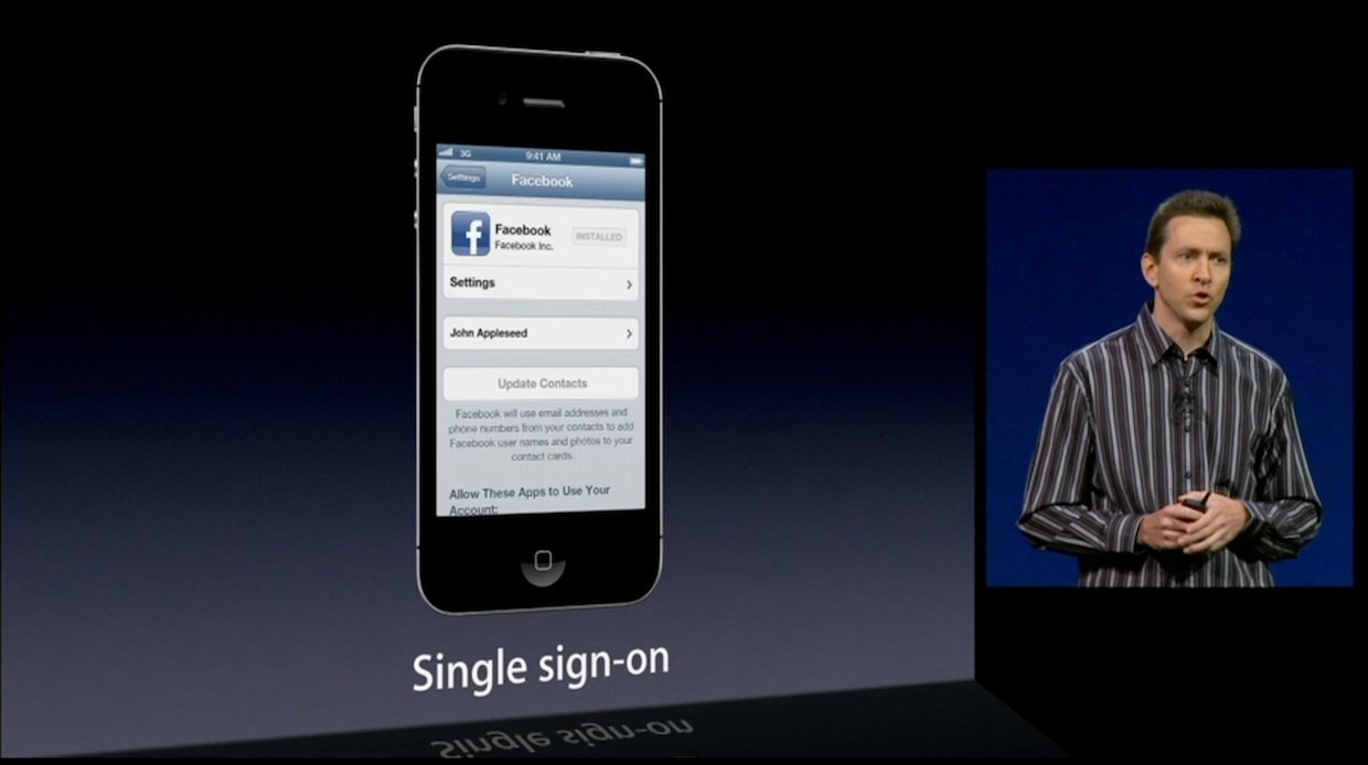 - Single sign-in means, like Twitter in iOS 5, you can log into your Facebook account in the Settings app, and other apps -- including the Facebook app itself -- can simply use that login to give you access. No more signing into each app individually.